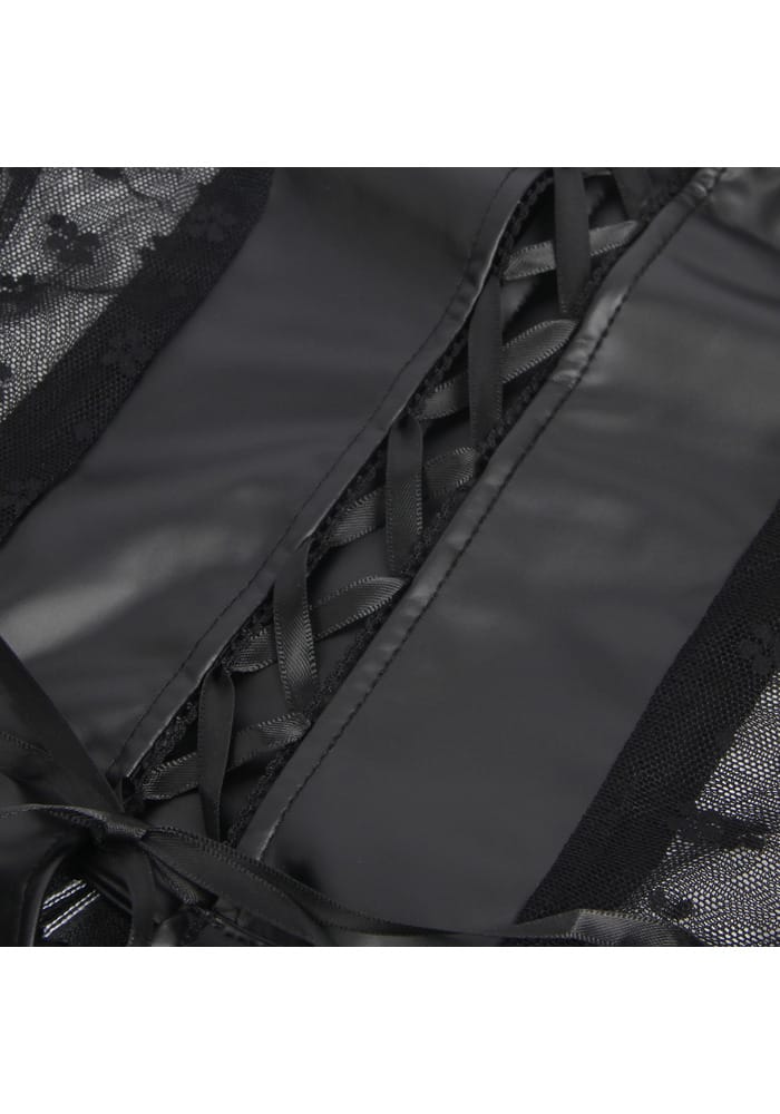 1. Luxe materialen: PU-leerstof met kanten mesh-splitsing voor een stijlvolle en sensuele look.