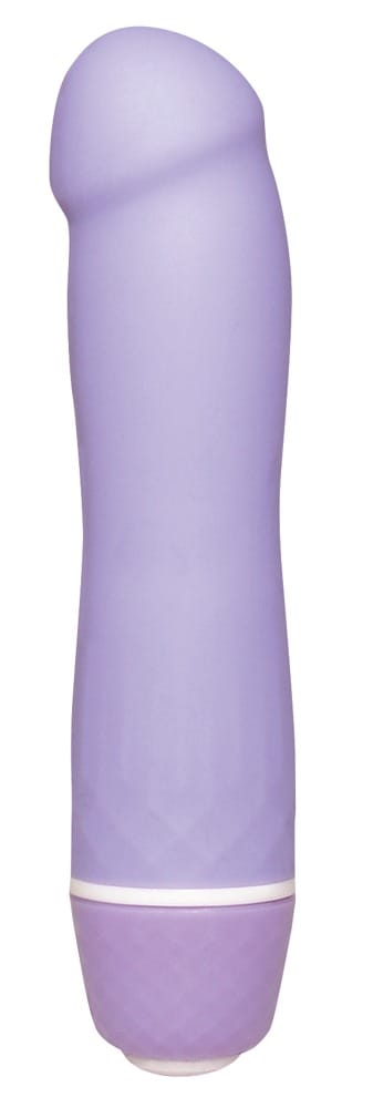 Paars gekleurde penis vibrator met 7 vibratie standen. Totale lengte ca. 12,4 cm, Ø 2,3 cm tot 2,6 cm. Materiaal: siliconen, ABS. (Gelieve batterij apart te bestellen: 1 x Mignon/AA)